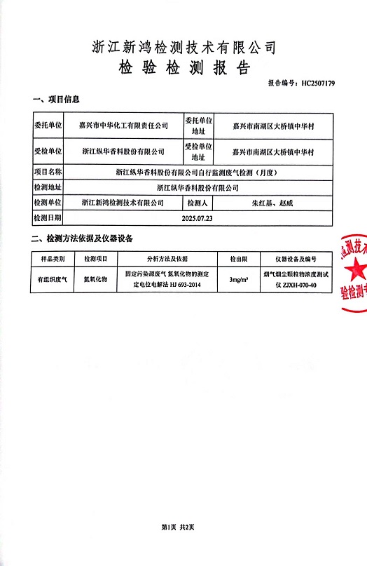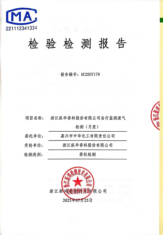 - 縱華香料5月廢氣檢測(cè)報(bào)告
