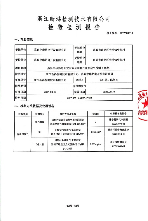 報(bào)告名稱:中華熱電9月廢氣檢測報(bào)告